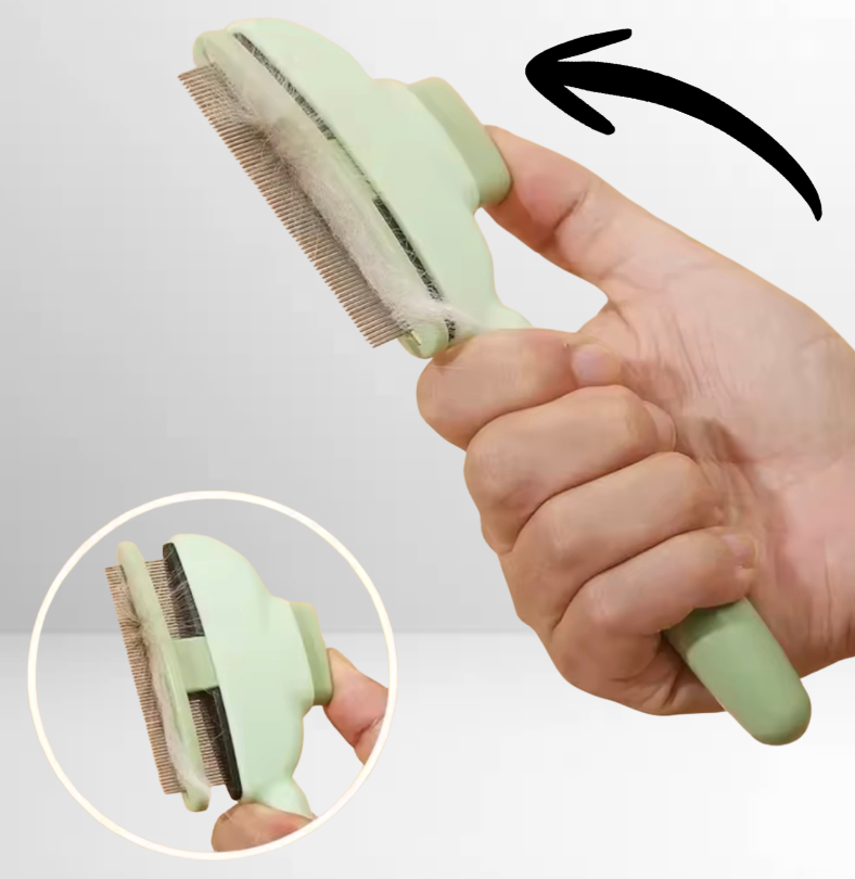 Mit nur einem Knopfdruck werden Haare und Fellreste sofort entfernt. Die Bürste bleibt sauber, hygienisch und jederzeit einsatzbereit – kein Anfassen von Fellresten, kein Aufwand nach der Pflege.