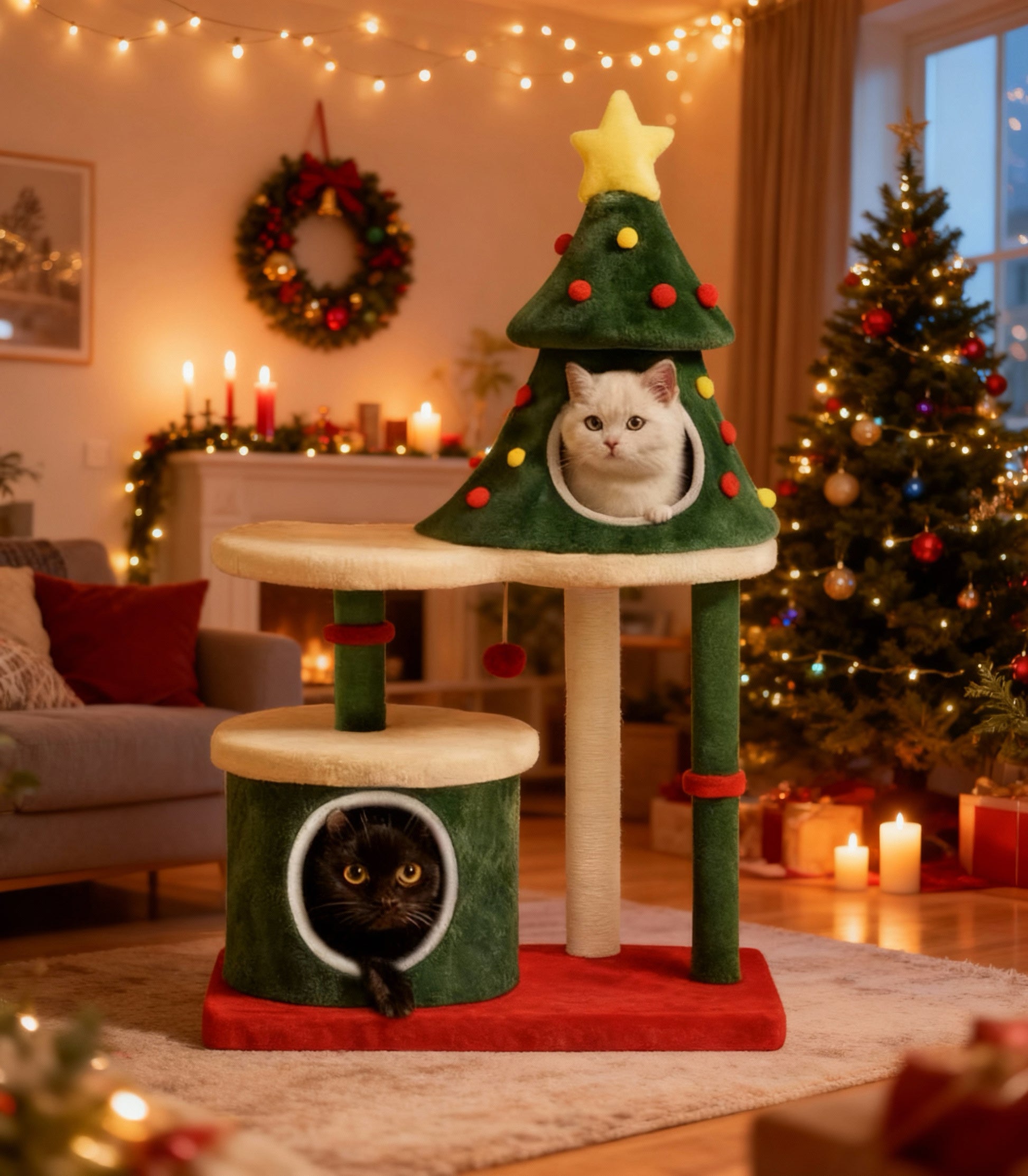 Bietet deinen Katzen eine erhöhte, weiche Liegefläche zum Beobachten, Entspannen und Mitschauen beim Weihnachtsgeschehen.